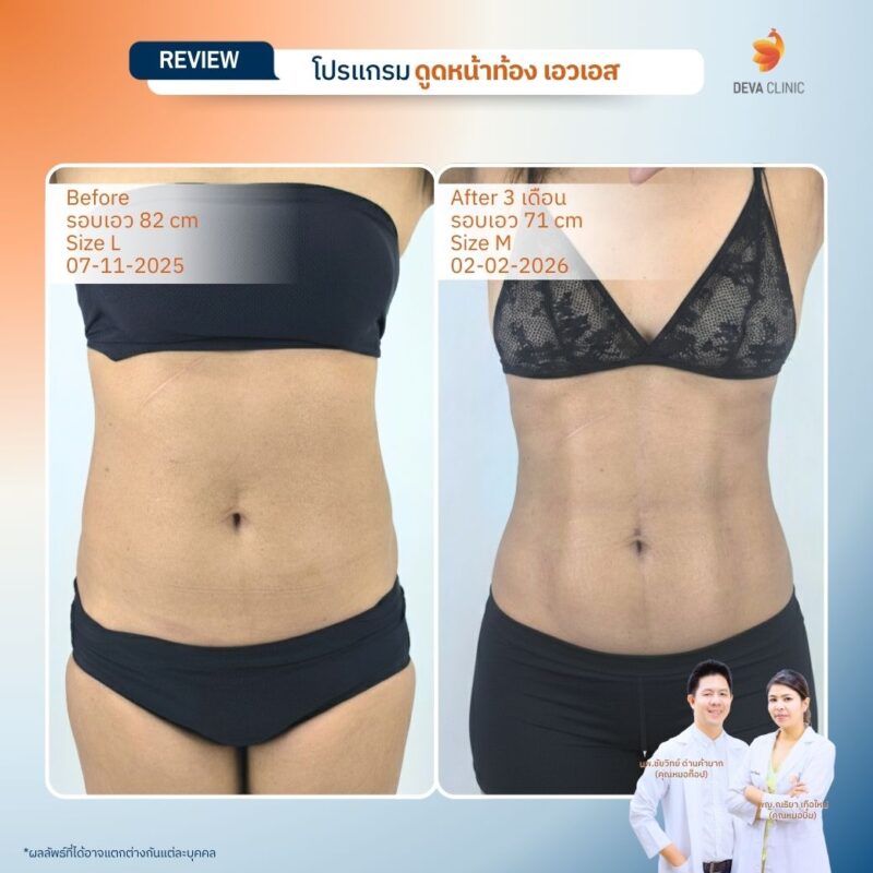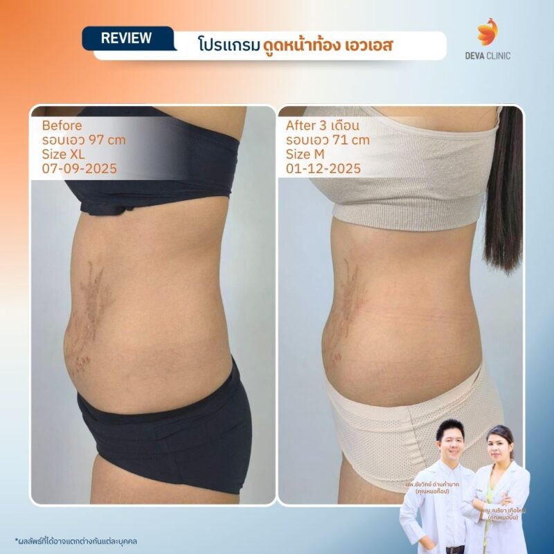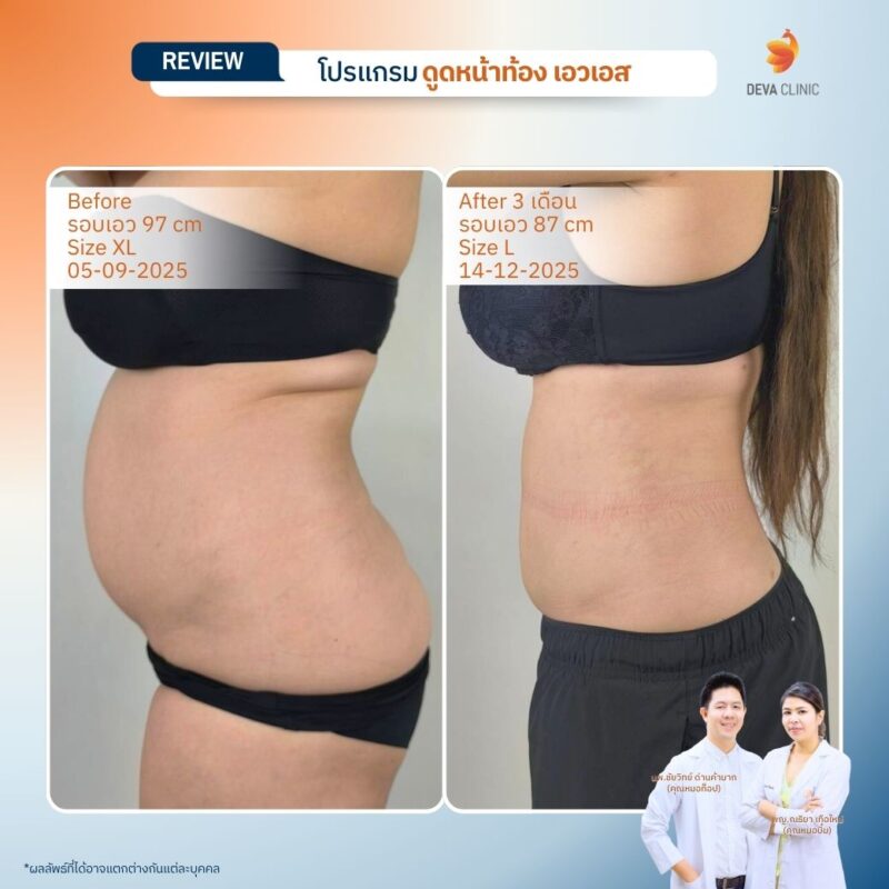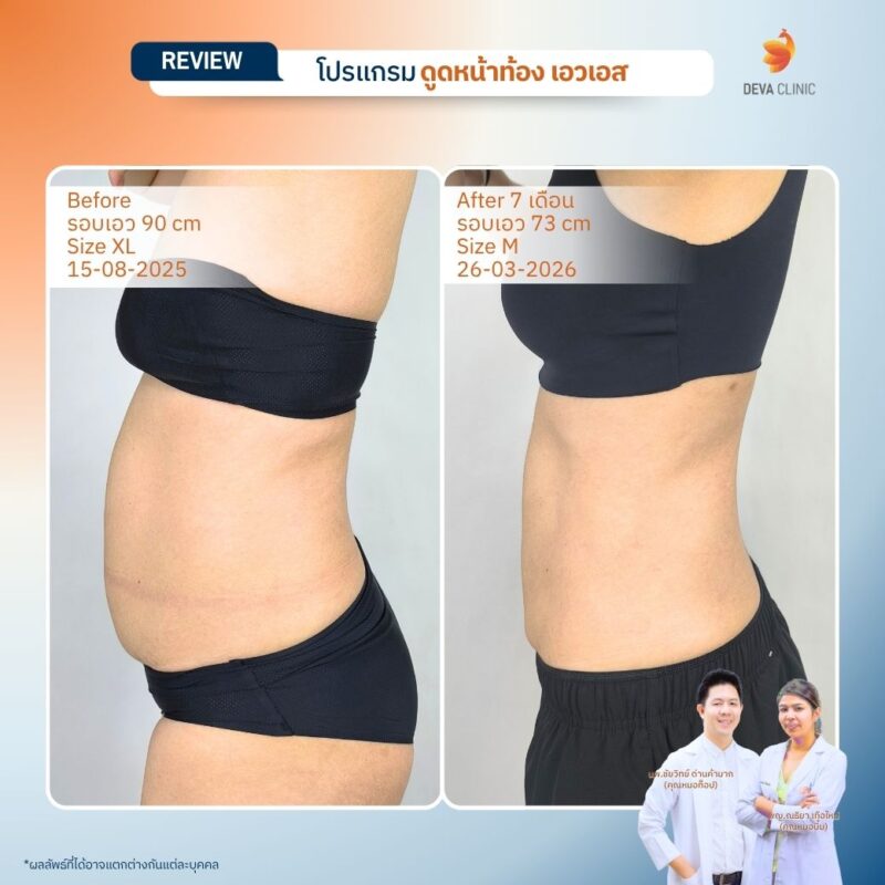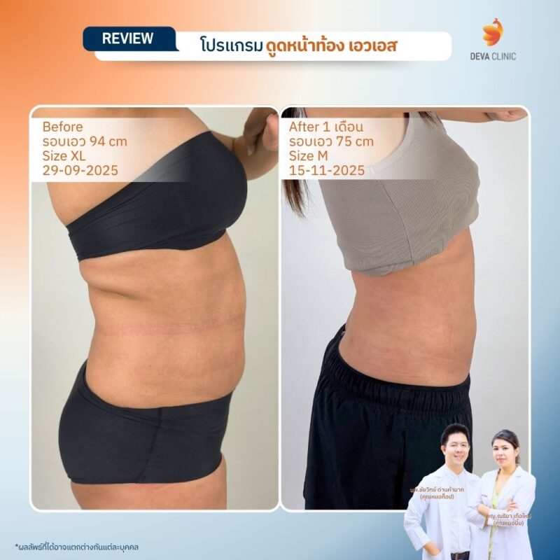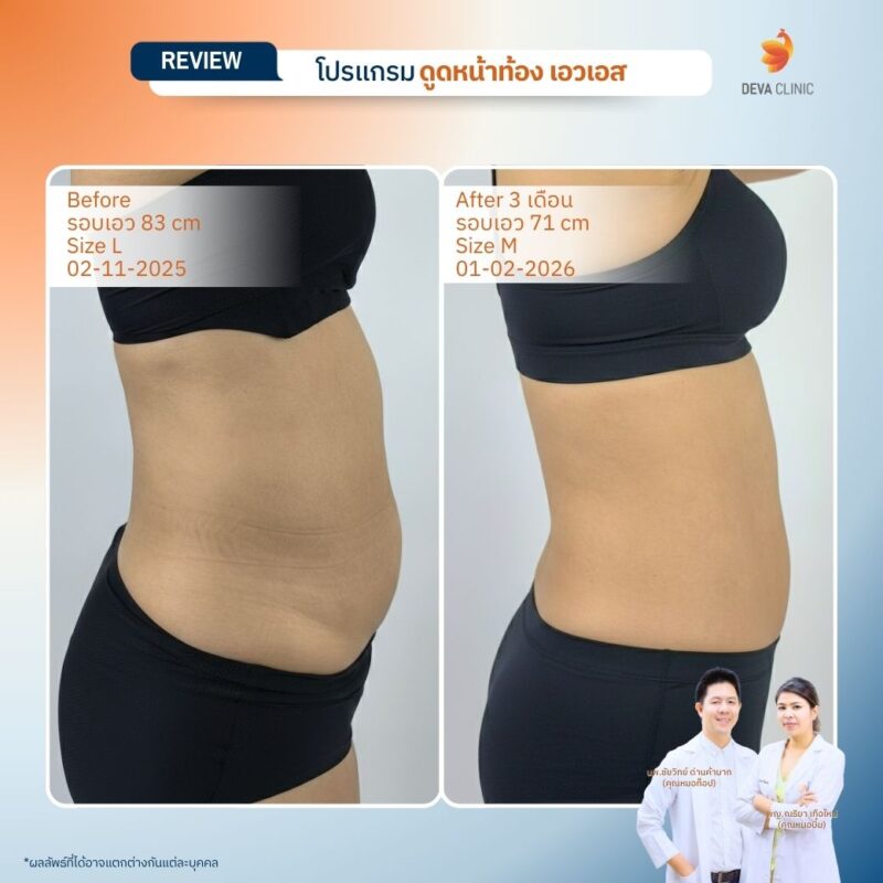 รีวิวดูดไขมันหน้าท้อง เอวเอส Deva Clinic