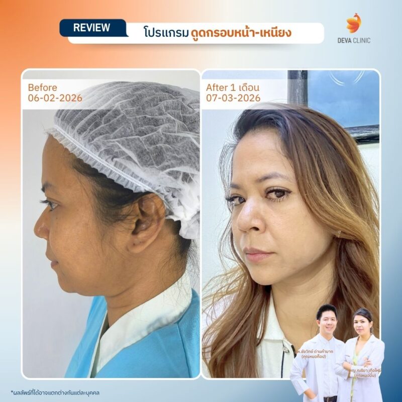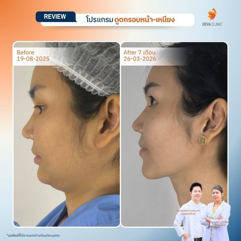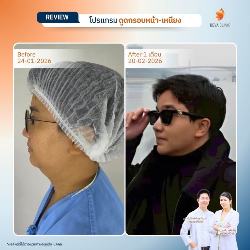 รีวิวดูดไขมันกรอบหน้าและเหนียง Deva Clinic